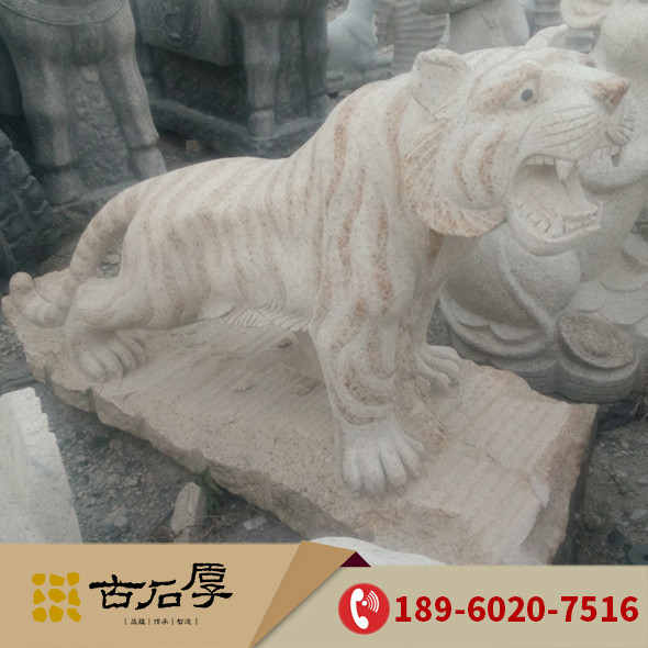 自漢代以后虎一直成為勞動人民喜愛的保護神,而沒有成為帝王的象征,經過漫長的歷史演化與發展,崇虎的文化意識,已成為中華民族的共同的文化觀念。石雕老虎在民族傳統文化中,是,威嚴高貴,霸氣的象征,同時,石雕老虎還具有長壽的寓意。老虎是百獸之王,因此,石雕老虎也是光明的象征。石雕老虎不僅有著吉祥的寓意,同時,還有鎮宅辟邪的作用。對于風水的運轉是有很大的幫助的。石雕老虎更能彰顯主人的霸氣和高貴的氣質。老虎是一種祥瑞的神獸,石雕老虎有著激昂的神態,熠熠生輝,以其恢弘的氣勢,似是馳騁在九州大地,是中華民族文化當中最是有著深遠意義的形象。