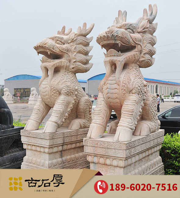 石雕麒麟:麒麟是古代的仁獸,不僅是祥瑞的象征,也是權貴的象征,還具有催財升官、招子送子、鎮宅招財等風水作用。麒麟是四大瑞獸之一,也是風水產品中用的最多的瑞獸。