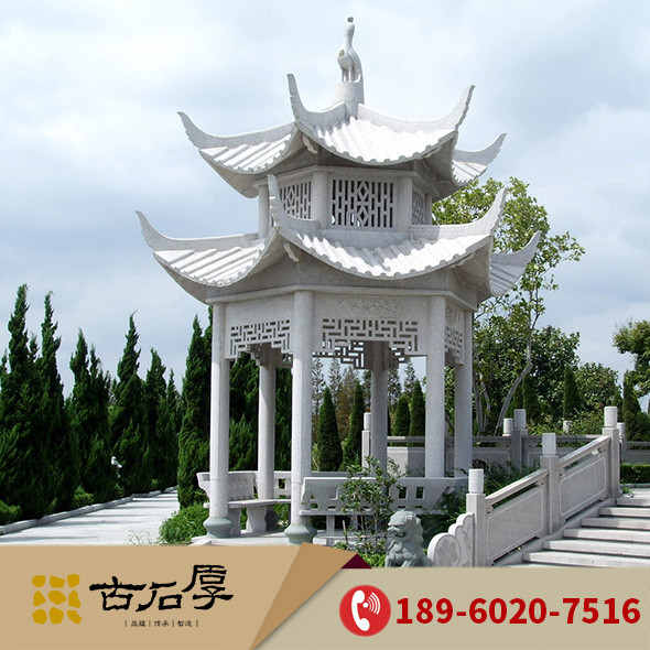 在我國園林中,幾乎都離不開石亭。在園林中或高處筑亭,既是仰觀的重要景點,又可供游人統(tǒng)覽全景,在疊山腳前邊筑亭,以襯托山勢的高聳,臨水處筑亭,則取得倒影成趣,林木深處筑亭,半隱半露,即含蓄而又平添情趣。石雕涼亭具有著美觀、時尚、環(huán)保、抗老化、不變形的性能優(yōu)點。