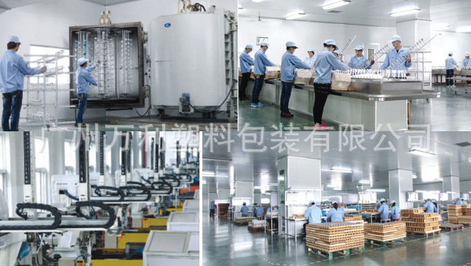 廣州萬利塑料包裝有限公司創立于2000年,是一家集設計研發、生產制造、產品深加工、銷售及服務于一體的日用玻璃制品生產企業。專注化妝品包材生產制造,從設計、開模、試樣、生產、拋光打磨、蒙砂、真空電鍍、uv噴涂、鍍七彩、內噴加工、激光雕刻、高低溫單色及多色印刷、燙金銀、印金銀、移印、印花、3D打印、水轉印、貼標、貼牌、洗字一站式服務。并為廣大客商提供相關的塑料配件、各式噴頭、鋁蓋、瓶肩、底套等配套服務。