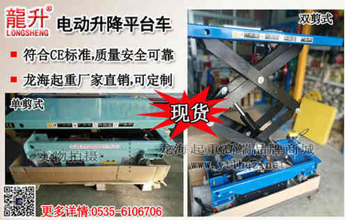 龍升電動升降平臺車為煙臺開發區龍海起重工具有限公司自主品牌產品,符合歐洲EN1570-1999標準,質量可靠。